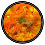 Faites revenir les légumes séparément avec de l'huile, jusqu'à attendrissement. Faites dorer les oignons 1 minute puis ajoutez le mélange pilé en remuant. Ajoutez le curcuma et versez le tout sur les légumes. |